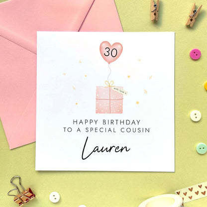 This cute pink themed birthday card is ideal for Cousin! Make her smile with a unique personalised birthday message by adding her name. The age can be changed to any such as 16th, 18th, 21st, 30th and 40th.