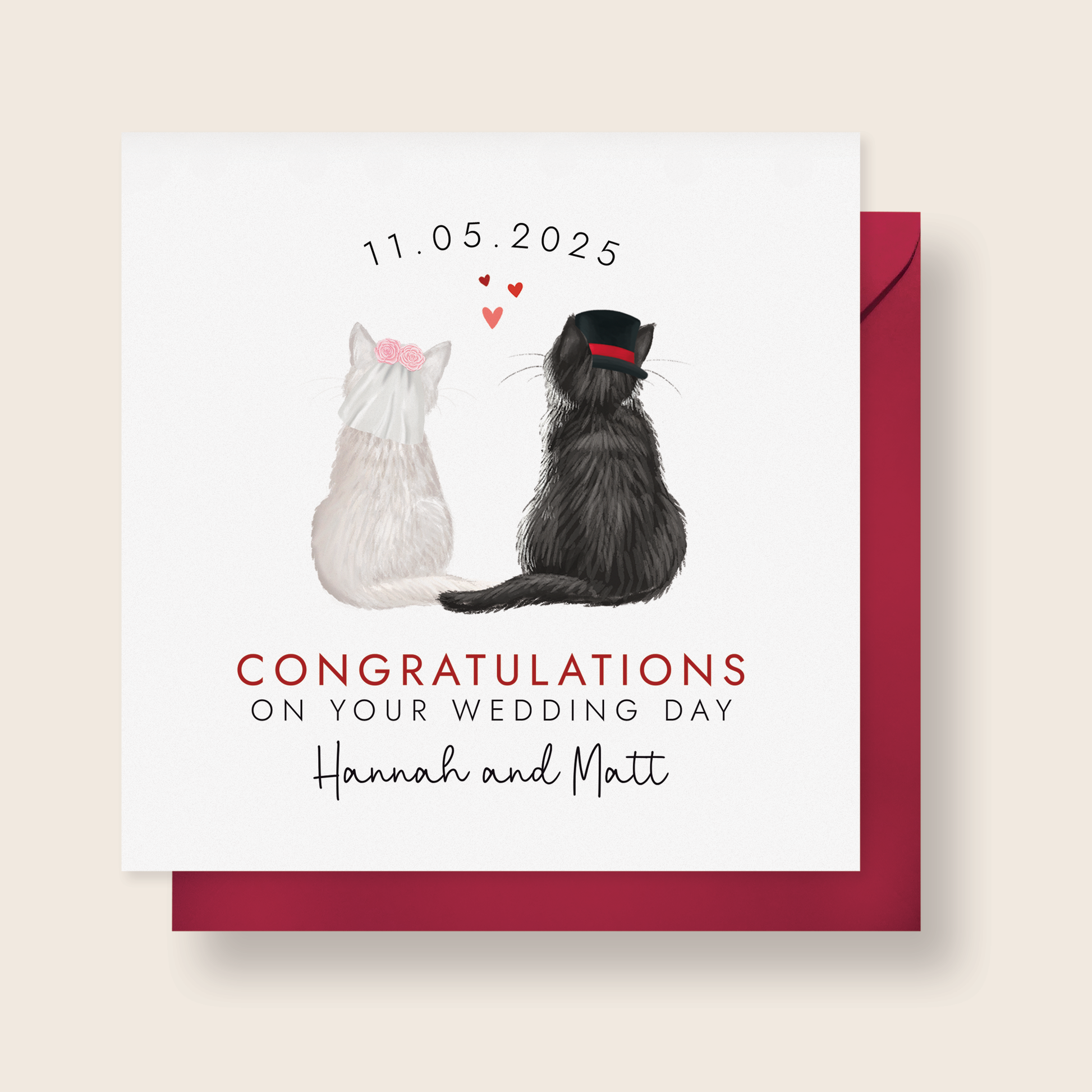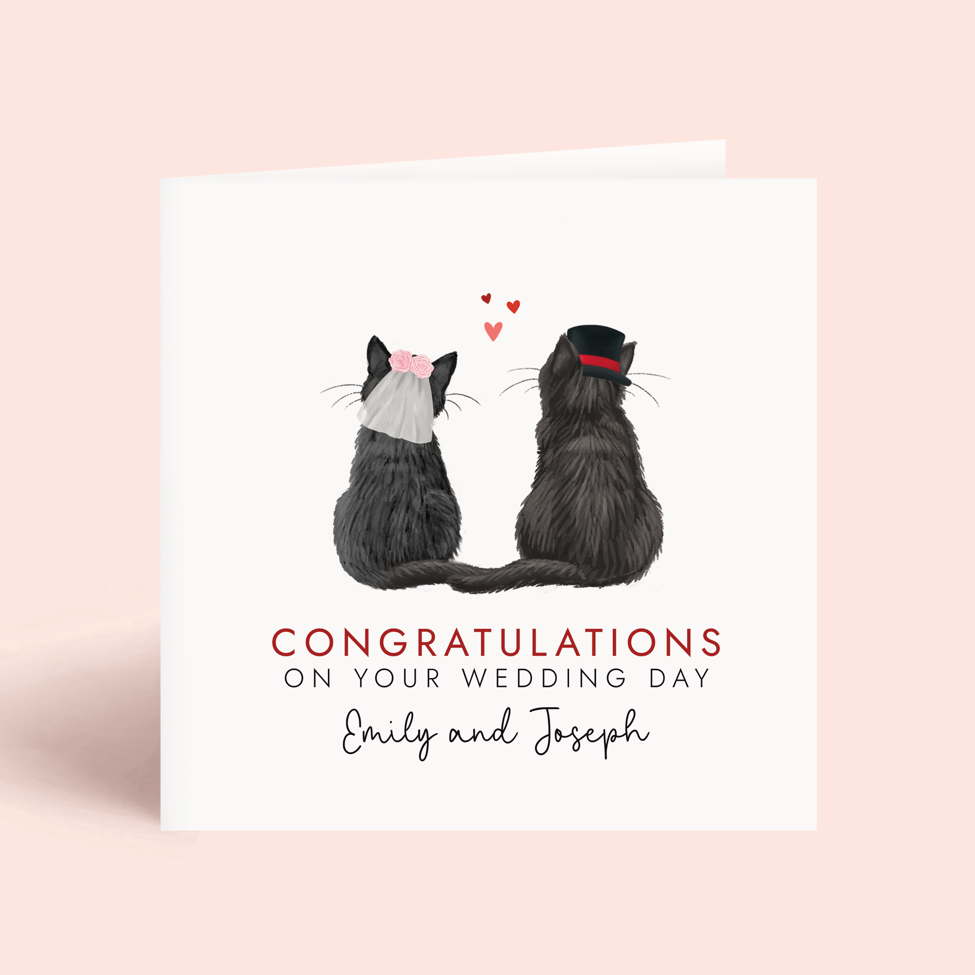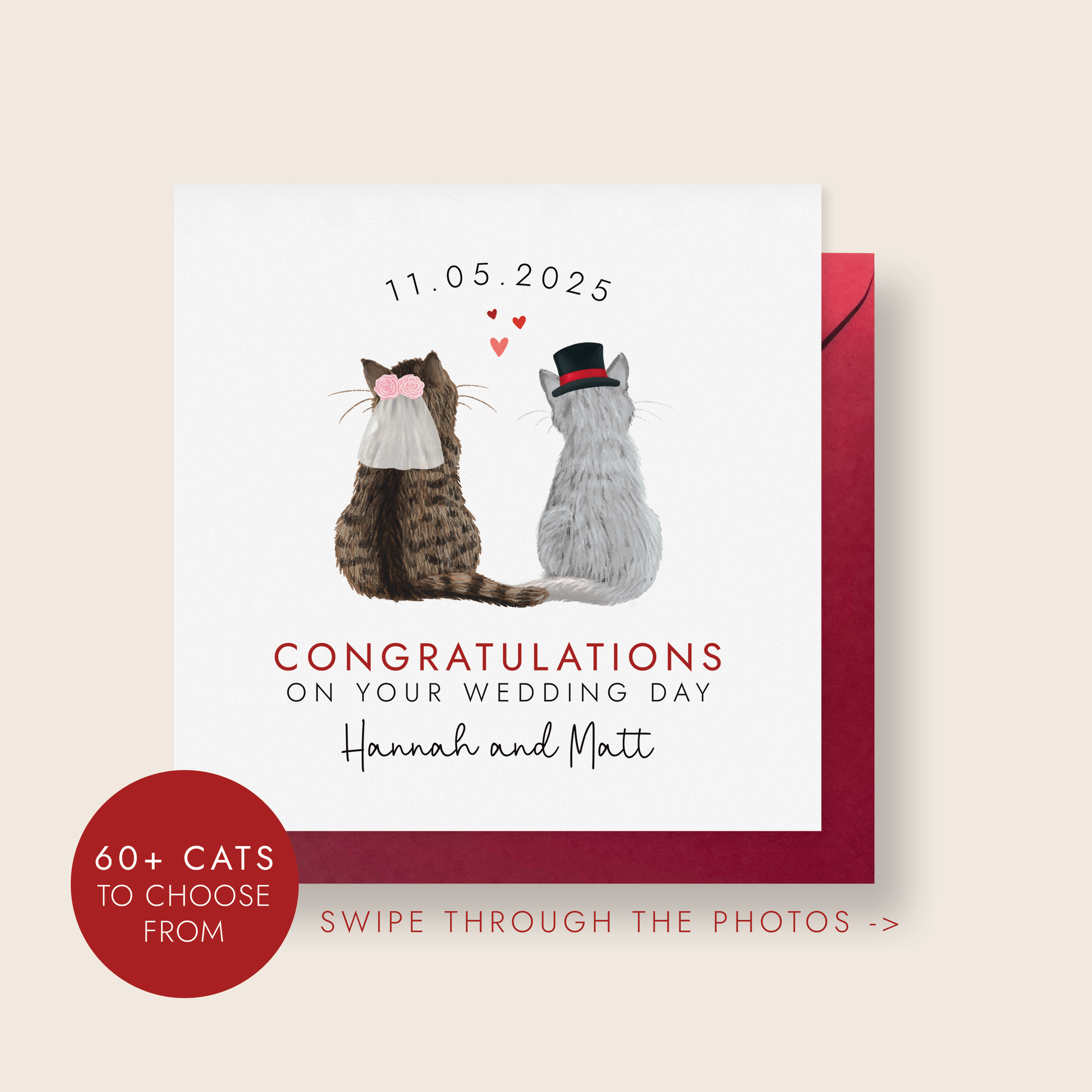 Celebrate a special couple’s big day with this one-of-a-kind Choose the Cats Mr and Mrs Wedding Card. Make their congratulations card truly memorable by selecting both cats from our wide range of colours and breeds - options including Ragdoll, Tabby, Tuxedo, Black, White, Calico, Ginger, and more! For an extra personal touch, you can also customise the card with the couple’s names or surname as well as their wedding date.