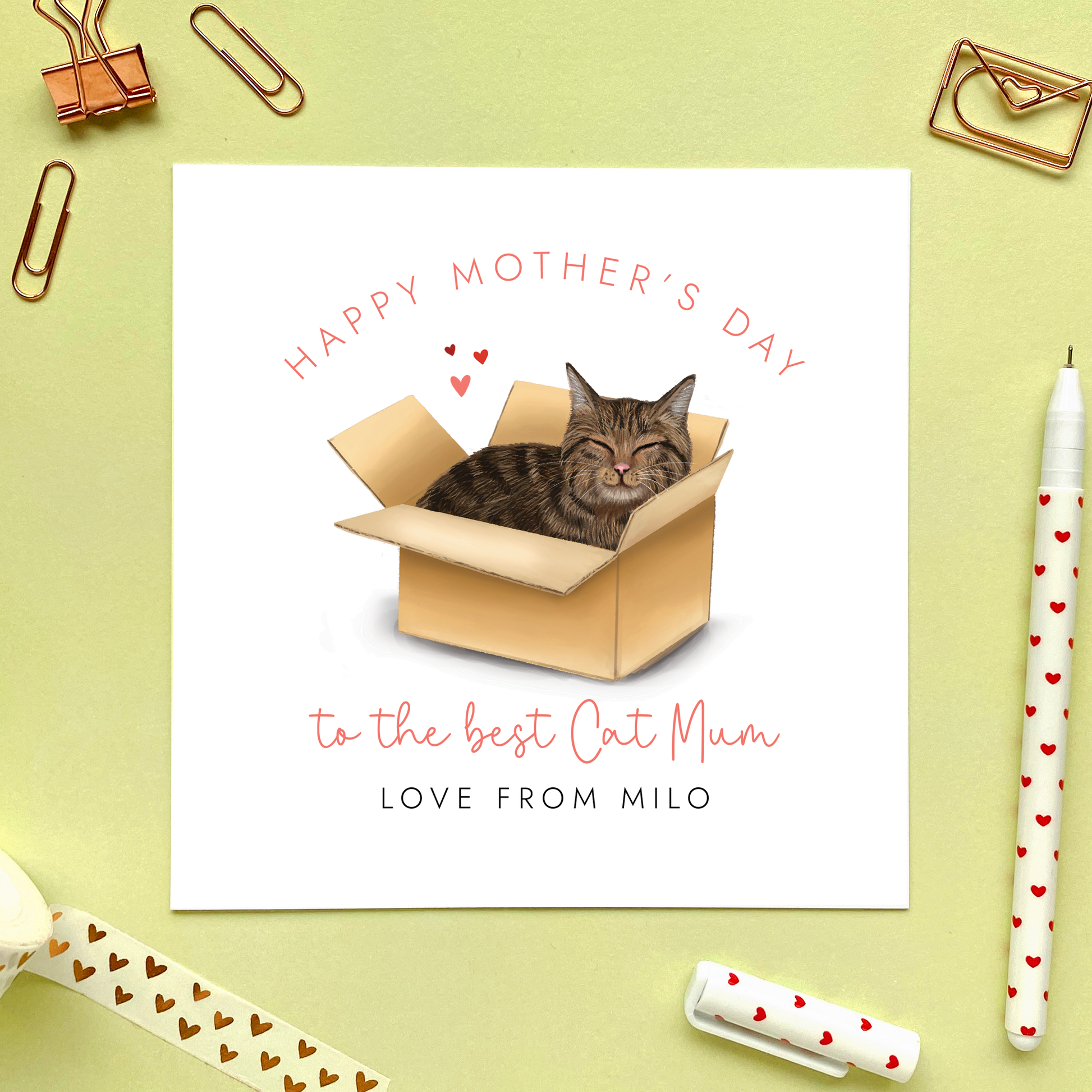 This special Personalised Cat in a Box Mother's Day Card for Cat Mum is sure to make her smile! Ideal as a unique Mothers Day Card from the Cat.