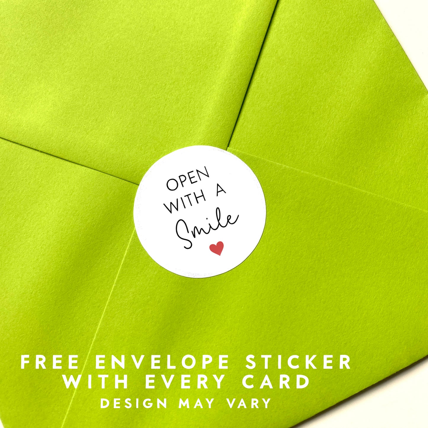 To send to the recipient, please let us know when placing the order - your card will be sealed in it's envelope with the sticker. It'll still be sent in a boardback envelope to keep it protected. Remember to include their address at checkout, and don't forget to include an inside message!