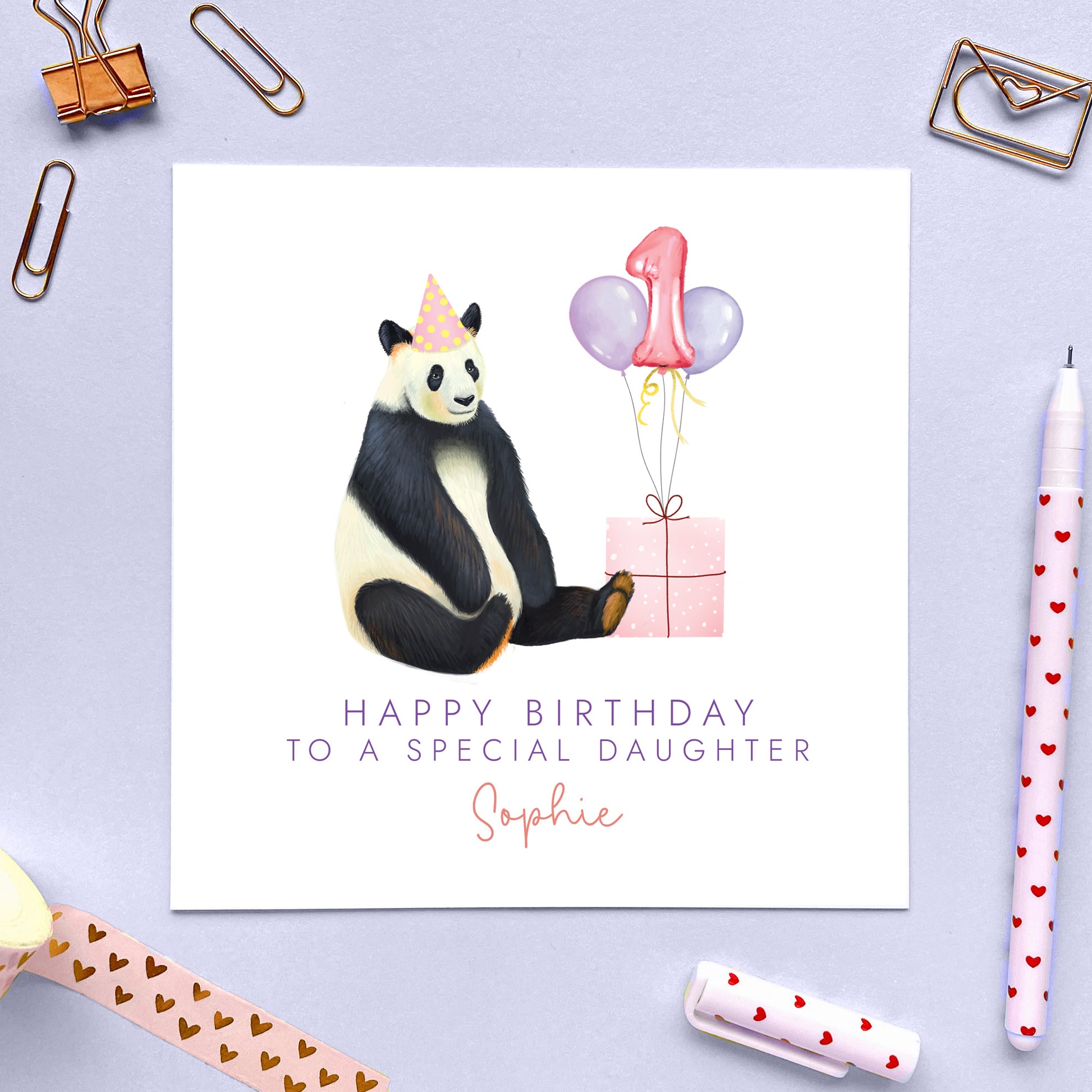 Celebrate her special day with this adorable Personalised Panda Birthday Card for Girls!